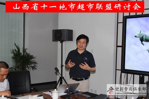 中国晋商俱乐部秘书长刘文斌作为特邀嘉宾向山西十一地市超市的各位当家人介绍了晋商O2O联盟的战略规划和发展历程,他表示中国晋商俱乐部将会不遗余力的支持山西省十一地市超市联盟的相关工作,共同创造晋商新的辉煌。