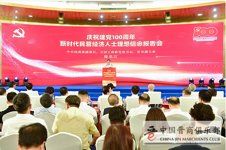 全国工商联党组书记、常务副主席徐乐江在讲话中指出,在全党上下热烈庆祝建党100周年、深入推进党史学习教育、掀起学习习近平总书记“七一”重要讲话热潮之际,召开庆祝建党100周年新时代民营经济人士理想信念报告会,激发广大民营经济人士为全面建成社会主义现代化强国而奋斗的信心力量,具有特殊重要的意义。五位企业家代表作的新时代坚定理想信念的报告,表达了民营经济人士心怀祖国、实业报国的真挚情怀,展现了民营经济人士百折不挠、敢闯敢干的精神风貌,折射了民营企业砥砺奋进、迎难而上的光辉历程。回望中国共产党的100年,党始终把广大工商界人士作为长期执政必须团结和依靠的重要力量,支持工商界人士在伟大奋斗中实现人生抱负,一代代工商界人士与国家同呼吸、与人民共命运、与时代齐奋进,听党话、感党恩、跟党走,见证并参与了中华民族从站起来到富起来、再到强起来的伟大飞跃,为中国革命、建设、改革贡献了民营经济力量。