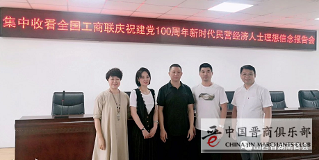 2021年7月21日,全国工商联举办庆祝建党100周年新时代民营经济人士理想信念教育报告会,山西省工商联组织各省级商会会长、秘书长、企业家代表参加视频会议,深入学习领会习近平总书记在庆祝中国共产党成立100周年大会上的重要讲话精神,推动党史学习教育走深走实,引导广大民营经济人士在新征程上坚定理想信念,更好听党话、感党恩、跟党走,为实现全面建成社会主义现代化强国目标、实现中华民 族伟大复兴的中国梦作出新的贡献。