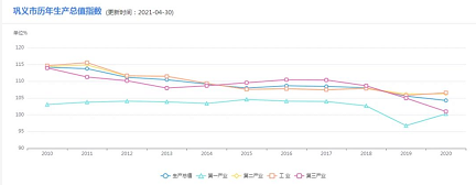 从巩义近十年走势中,可以看到类似的趋势——在2012年出现大幅下跌后,巩义规上工业增加值增速仅在2015-2017年间保持短暂平稳上升,继而再次遭遇“滑铁卢”,呈整体下降趋势。
