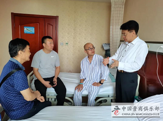 7月25日上午,河南省晋商会(中国晋商俱乐部联合发起机构)会长郭启文来到郑州颐和医院,看望在防汛抗灾中受伤的我会常务副会长、河南麦吉力医疗器械有限公司董事长宋志邦。秘书长张佛廷,党支部副书记韩建华,副秘书长崔丽媛等陪同参加了看望慰问活动。