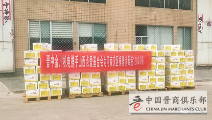 7月24日,山西太行明珠实业有限公司启动紧急预案,调拨库存、加班赶产,捐赠5万桶方便小米粥,经河南省助残济困总会分发到受灾地区,帮助受灾群众应急需、渡难关;晋中帅峰鹏混凝土有限公司第一时间组织人力物力连夜运送价值5万元的水和方便食品到河南新乡王村镇400多人的受灾安置点,为防汛救灾略尽绵力;晋中金川机电设备有限公司携手山西点爱基金会为河南灾区捐赠消毒液12000瓶。