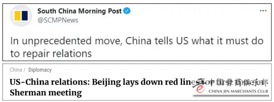 “中方的这一举动史无前例,”香港《南华早报》26日称,这是中方首次为中美关系划下“红线”,并明确向美方提出修复关系的补救措施。