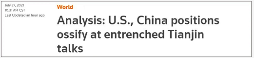 值得注意的是,美国主流媒体对此次“天津会谈”的报道和舍曼、普莱斯等美国政客如出一辙,尽量淡化中国对美国的指责和划线。