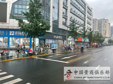 某通讯一条街,华为、OPPO、苹果、小米比邻竞争。