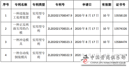 以上4项专利的专利权人均为公司及其全资控股子公司所有。该4项专利均为本公司及其全资控股子公司自主研发,其所涉及技术与公司主要技术相关,并已应用于公司现有的产品。公司一直以来重视科研创新,稳抓产品质量,不断提高技术研发水平,各项工作均取得出色的成绩。