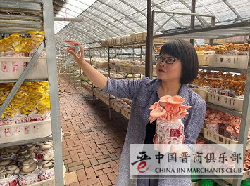 在盘锦鑫慧富民食用菌种植专业合作社,工作人员在展示彩色蘑菇。农行盘锦分行通过“惠农贷”支持企业发展。记者温济聪摄