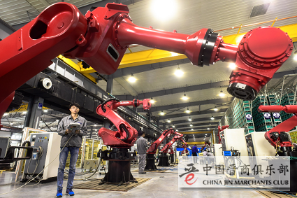 沈阳新松机器人生产车间里工人在现场调试。今年1月,沈阳新松机器人集团旗下企业——医疗科技股份公司以10项专利作为质押物,获得2000万元贷款。这是辽宁省首笔以知识产权作为合格抵质押物的流动性资金贷款。记者孙潜彤摄