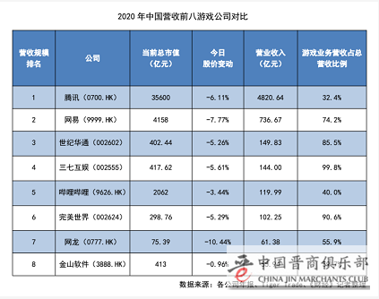 这天,一篇被视为监管信号的新华社《经济参考报》文章,引发了港股和A股游戏公司股价集体下跌,最大跌幅时,这些公司市值损失5000亿元左右。港股市值最高的腾讯控股(0700.HK)股价跌幅达到10%,网易(9999.HK)跌幅近15%,中手游(0302.HK)跌幅约20%,心动公司(2400.HK)跌幅17%。A股游戏公司三七互娱(002555)、完美世界(002624)跌幅约5%。