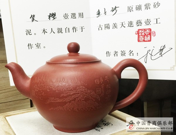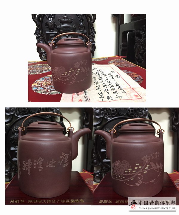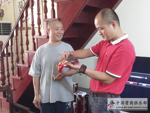 中国晋商俱乐部秘书长刘文斌表示,张跃华老师出品的限量版紫砂壶要优先推荐晋商们收藏,将三晋籍书画大师的作品与晋商融合发展是中国晋商俱乐部的职责之一,希望张跃华老师能够给与机会,张跃华老师表示非常认同。