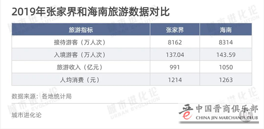 放在全国来看,张家界2019年接待游客、入境游客和旅游收入均接近海南全省体量,而且两地游客人均消费金额只相差约50元。