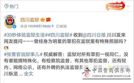 最近,因为某社会热议事件,不少网友好奇监狱里的生活是什么样子。@四川监狱 于4日推出了30秒短视频全方位展示了狱中生活,并随后解答了一系列网友提问,有人问到明星罪犯是否会受到优待,@四川监狱 明确回答绝无可能。