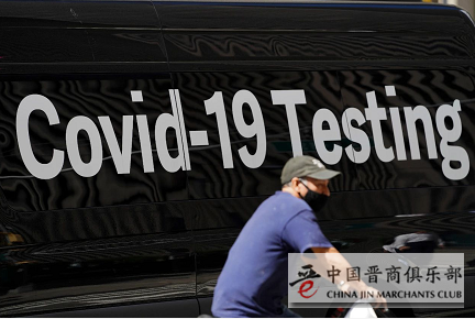一名男子骑车经过美国纽约街头的新冠检测点。新华社记者 王迎 摄
