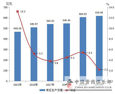 根据博罗县统计局的数据,2020 年全县地区生产总值为 619.04 亿元,同比增长 2.2%。去年 GDP 相比 2015 年增长 22.9%,2016-2020 年年均增速为 4.2%,但近年的增速明显有所放缓。