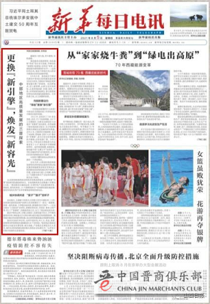 8月5日,《新华每日电讯》头版头条刊发《更换“新引擎”,焕发“新容光”中部地区高质量发展的三晋探索》一文。文章从向创新要动力、城乡协调共进、摘黑帽披绿装、崛起对外开放新高地、着力民生建设等五方面,介绍了近段时间来,山西省不断推出的改革发展新举措。文章认为,山西立足自身实际,认真贯彻创新、协调、绿色、开放、共享的新发展理念,努力探索富有特色的高质量发展新路径,正是站在了新的起点上,迈上了新征程。