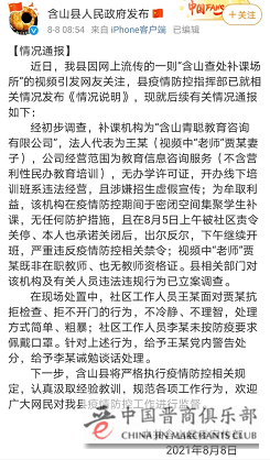 近日,安徽省马鞍山市含山县因网上流传的一则“含山查处补课场所”的视频引发网友关注,8月8日,含山县人民政府官方微博就后续有关情况发布通报。