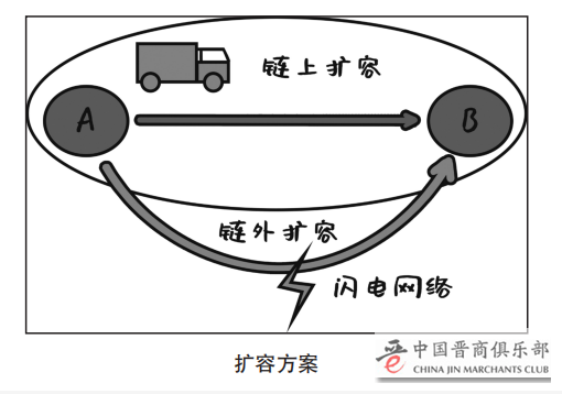 前两个方案都要对比特币软件进行更改,都是针对比特币区块链来进行扩容,所以就叫“链上扩容”。第三个方案是在比特币区块链之外进行扩容,所以通常被称作“链外扩容”,或者“链下扩容”“第二层扩容”。