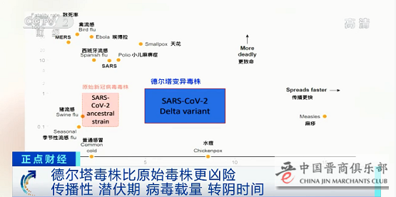 美国疾控中心称,德尔塔毒株的高传染性与水痘病毒相当,比非典病毒、天花病毒、季节性流感等病毒传染性都要强,每个感染德尔塔毒株的人平均可传染8到9个人。