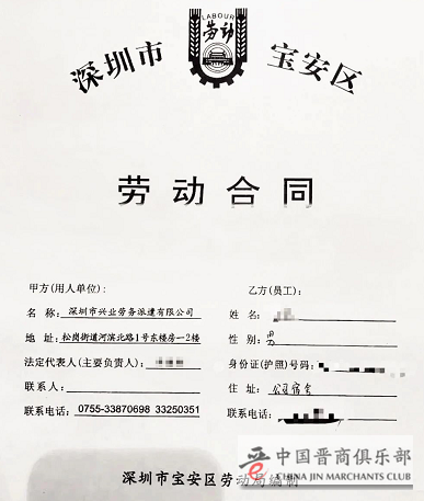 深圳市兴业劳务派遣有限公司与余超签订的劳动合同。