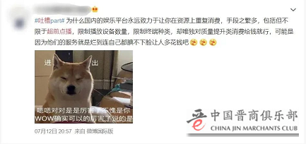 有网友直接表示,“为什么国内的娱乐平台永远致力于让你在资源上重复消费,手段之繁多,包括但不限于超前点播,限制播放设备数量,限制终端种类,却唯独对质量提升类消费给钱就行,可能是因为他们的服务就是烂到连自己都腆不下脸让人多花钱吧。”