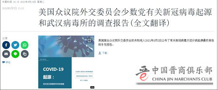 综合美国众议院网站、《新闻周刊》杂志网站等近日消息,8月1日,一份署名为“众议院外交事务委员会少数党幕僚”和委员会“共和党首席成员麦考尔”的报告再度将新冠溯源问题政治化,炒作起了对武汉病毒研究所的调查。