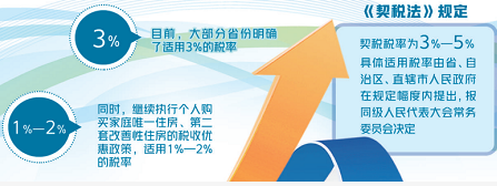 值得关注的是,按照税制平移的思路,《契税法》保持现行税制框架和税负水平总体不变。在税率方面,《契税法》沿用暂行条例的做法,由各省在3%—5%范围内确定具体适用税率。