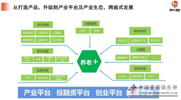 产业发展更加多元化,伴随“养老+”概念的提出,产业从关注单一的养老功能,衍生出更为丰富的业态,养生养老、健康社区、生态养老、智能养老等,特别是伴随着移动互联网、物联网的繁荣发展,健康养老产业的生态平台时代徐徐拉开帷幕。