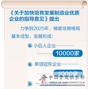 “国家支持和培育中小企业走‘专精特新’发展道路的效果逐渐显现。”马彬说,《意见》提出力争到2025年,梯度培育格局基本成型,发展形成万家“小巨人”企业、千家单项冠军企业和一大批领航企业,“这就需要打造大中小企业融通发展生态,联合中小企业建设先进制造业集群、战略性新兴产业集群、创新型产业集群等。”