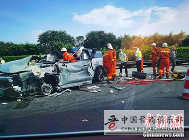 林文钦驾驶的蔚来ES8车祸现场。受访者供图