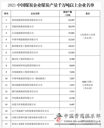 近日,中国煤炭工业协会发布了2021中国煤炭企业50强名单、2021中国煤炭企业煤炭产量千万吨级以上企业名单,该榜单均以2020年度数据为参考,这也是山西七大煤企“拆分”整合为山西焦煤、晋能控股、潞安化工集团、华阳集团四大国企后首次“亮相”上述榜单。