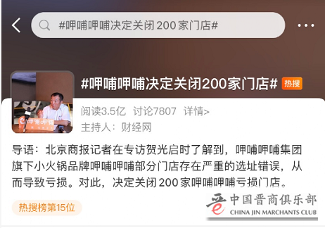 8月19日,“呷哺呷哺决定关闭200家门店”的话题冲上热搜。