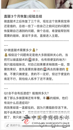 ▲ 图为《财经》记者代发的其中一条关于直腿术的笔记