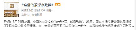 8月24日凌晨,奈雪的茶官方微博公开致歉,表示接受处罚。