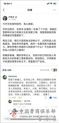 卢克文在知乎发文称,他在写作过程中,被“拉登那种对自己民族文化的深爱之情,渴望救国救民族的情绪深深震撼到了”,“在这之前,我们只是把他当恐怖分子,从阿拉伯人的角度说,他放弃所有富贵,耗尽一生跟苏联斗跟美国斗,跟世界俩大帝国死斗到底求个什么?不也是求阿拉伯人的复兴之路吗?”