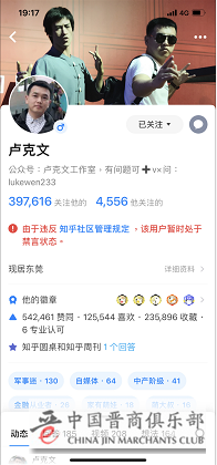 22日晚间,卢克文的知乎账号显示,“由于违反知乎社区管理规定,该用户暂时处于禁言状态”。
