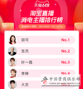 从天猫618数据来看,带货总榜被头部主播霸占,但多个细分领域的TOP1,都是明星主播。食品主播排行榜第一是林依轮,母婴主播排行榜第一是朱丹,消电主播排行榜前五名均为明星,其中胡可、李静、大左为谦寻签约艺人,吉杰为银河众星签约艺人。