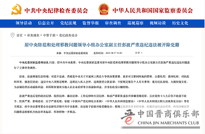 8月17日上午,中央纪委国家监委网站宣布,开除彭波的党籍。