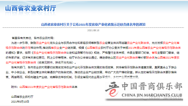 我省确定太原市“山西绿色山区农业产业化联合体”等47家联合体为山西省2021年度农业产业化省级示范联合体。