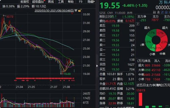 盘面上,万科A年内显著下跌,累计跌超27%。截至午间收盘,万科跌6.46%,报19.55元。