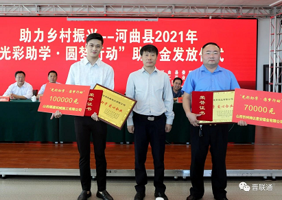 8月27日,河曲县委统战部、县工商联联合举行了助力乡村振兴——河曲县2021年“光彩助学·圆梦行动”助学金发放仪式。