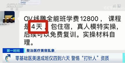 零基础医美速成班仅四到六天 警惕“打针人”资质