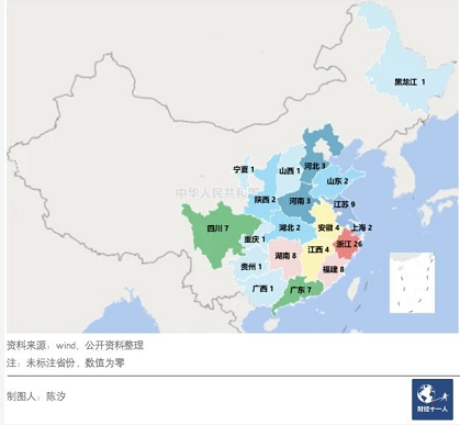 图1: 各省出生的千亿企业家个数
