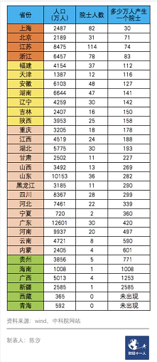 2、青海、西藏、新疆、云南、贵洲、广西、内蒙、海南等边陲偏远地区产生院士的概率最低。