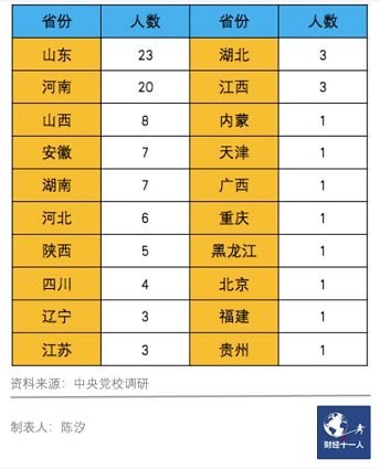 第三梯队的省份:江西4人、安徽4人、河北3人、河南3人、湖北2人、上海2人、陕西2人、山东2人。