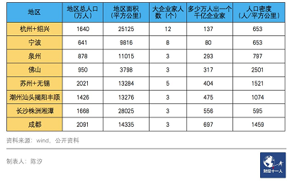表2: 八个盛产千亿企业家的热点地区