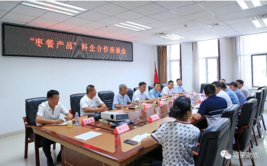 6月18日下午,我们在山西农业大学龙城校区山西功能食品研究院会议室,以山西罗家山食品科技有限公司的名誉,与该院共同召开罗家山“枣餐产品”科企合作座谈会。吕梁市政府一级巡视员尉文龙、山西农业大学山西功能食品研究院院长郭尚、临县人民政府副县长贺向亮、山西农业大学植物保护学院副研究员贺润平博士、山西农业大学山西功能食品研究院荞麦加工岗位专家李云龙、科研办主任何永吉博士、果蔬加工研究室主任张江宁、杂粮加工专家孟晶岩副研究员、果蔬加工专家韩基明副研究员,我们罗家山方面有我和艳兵及罗家山食品科技有限公司总经理薛清等管理层人员参加了座谈会。会议由山西农业大学山西功能食品研究院产业化研究室主任郭霄飞主持。