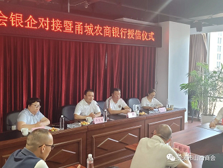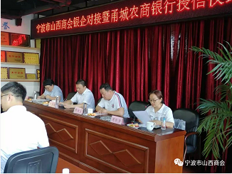 8月26日下午,在高新区研发园宁波交通工程咨询监理有限公司会议室举行了“宁波市山西商会(中国晋商俱乐部联合发起机构)银企对接暨甬城农商银行授信仪式”。甬城农商银行董事长李友增、高桥支行行长钱靖、行长助理唐丹丹及相关工作人员一同出席了本次授信仪式。出席仪式的商会成员包括:会长殷桂生、书记周秋芳、副会长王勤学、副会长许利维、副会长周建宝、秘书长崔晓波及部分商会理事和会员。书记周秋芳主持了本次仪式。