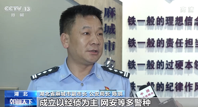 湖北省麻城市副市长 公安局长 陈琪:我们立即抽调警力,成立以经侦为主,网安等多警种协同配合的专案组,制订了周密的侦查计划,发挥了各警种的优势,合成作战,网上网下联动排查,综合研判,勾画了(犯罪团伙的)组织架构。