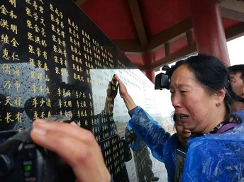 烈属们抚摸着烈士名录墙上亲人的名字恸哭(图源红色晋绥网)