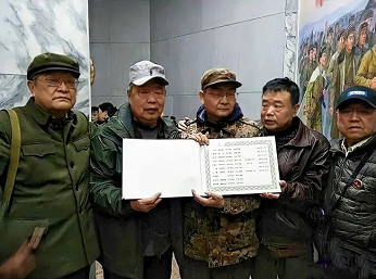 19团五兄弟手捧英烈名册,父辈的战友情在他们手中延续从左到右: 康 明(团长康致中之子)李小兵(军部组织科科长李中林之子)王安继(参谋长王伯明之子)王援朝(本文主人公)孙群凯(政委孙泽东之子)